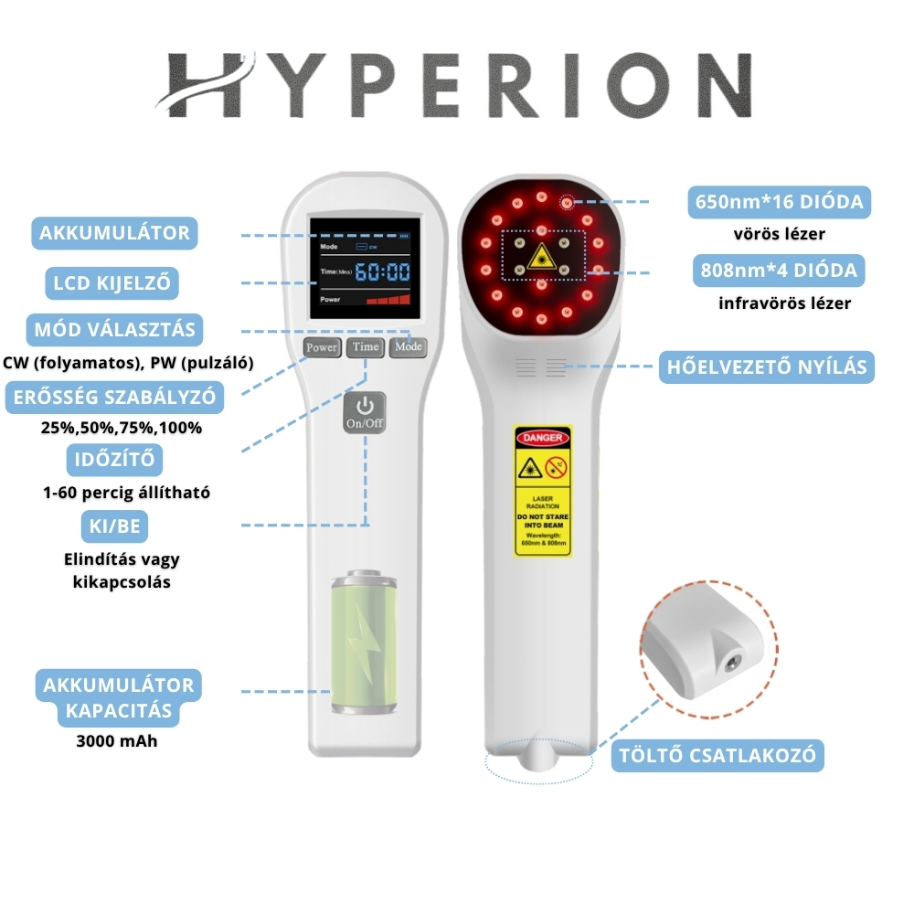 A Hyperion Smart Laser 340 és 880 korszerű lágylézeres technológiát kínálnak otthoni használatra. Mindkét készülék támogatja a gyorsabb szövetregenerációt, segít a fájdalom csillapításában, és hatékonyan mérsékli a gyulladásos tüneteket. A két modell között kialakításban és használati igényekben van eltérés, így könnyedén megtalálhatod azt, amelyik leginkább illeszkedik a mindennapi kezelési rutinodhoz.